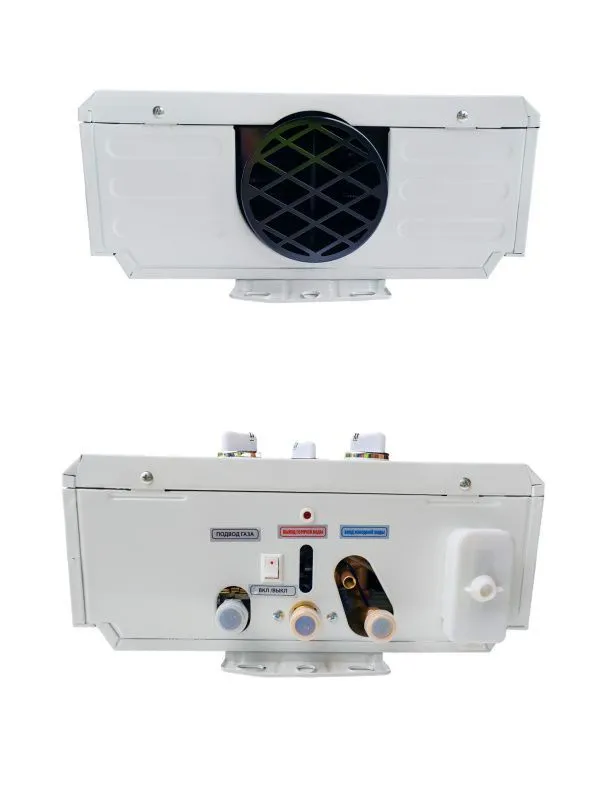 Водонагреватель газовый проточный работает при низком давлении воды (от 0,025 до 0,8 МПа), имеет высокий КПД 85%, а также компактный размер и универсальный цвет, который впишется в любой современный интерьер. Колонка газовая при мощности 20кВт способна нагревать 10 л/мин.