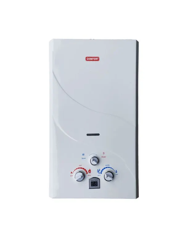 Водонагреватель проточной воды Comfort серии 10 предназначен для нагрева воды в любых жилых помещениях, оборудованных дымоходом, и подходит для кухни, для дачи, квартиры или для загородного дома. Нагреватель воды проточный предназначен для работы на природном газе(возможна настройка на сжиженный газ).Достоинства и преимущества