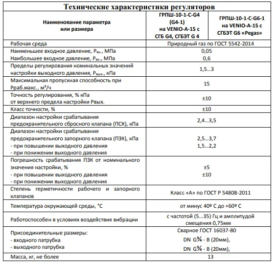 - автоматического отключения подачи газа при аварийном повышении или понижении выходного давления сверх допустимых заданных значений,