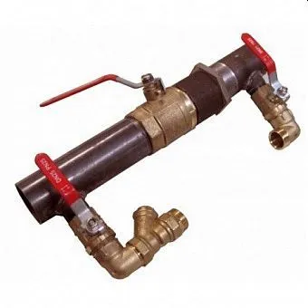 Байпас DN50 под кран - компонент системы отопления, который представляет собой сварной обводной трубопровод участка подающей магистрали с краном, под установку циркуляционного насоса, и комплектуется муфтой с контргайкой, тремя шаровыми кранами и фильтром грубой очистки воды.Установочный размер