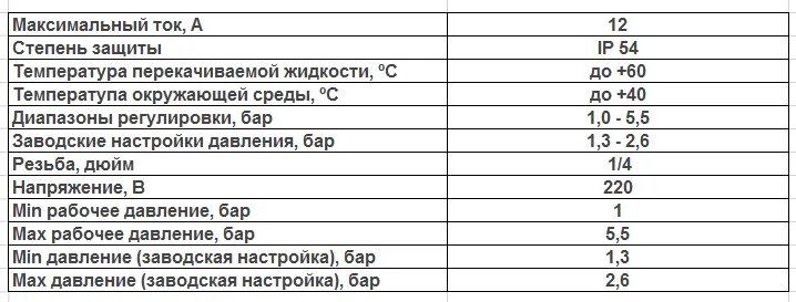 Реле давления отключает насос, когда давление воды достигнет верхнего установленного порога, и включает насос при снижении давления ниже установленного порога.Технические характеристики