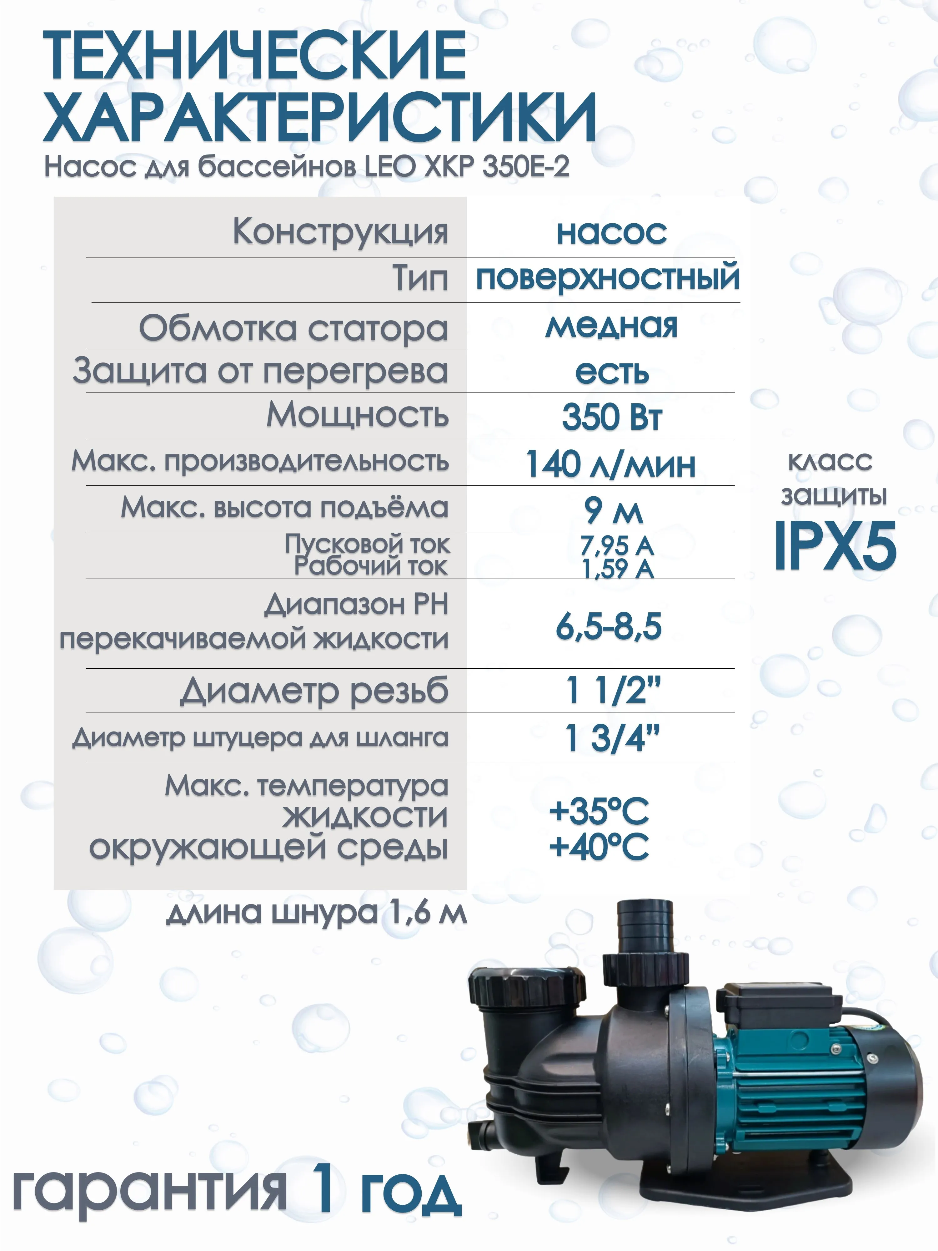 Насос для бассейна LEO XKP 350Е-2