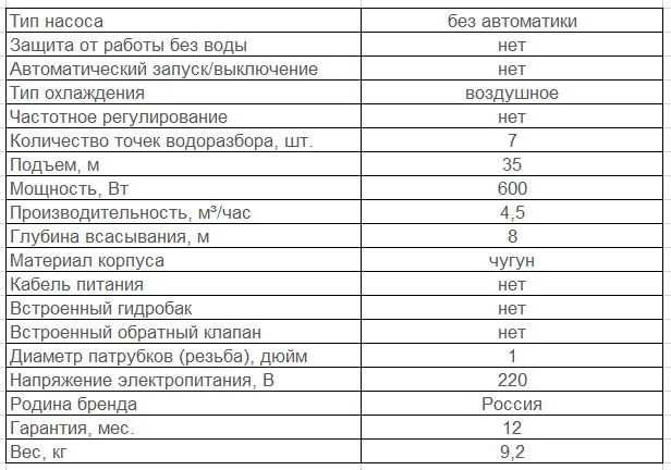 - Служит для перекачивания чистой воды (без абразивных примесей)