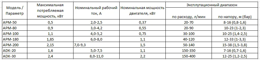 - Номинальный (средний) интервал по производительности: 50-400 л/мин