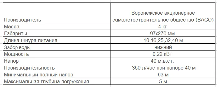 - Максимальная глубина погружения под уровень воды от 1 до 3 м.