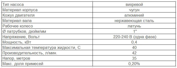 - Корпус насосной части: чугун с антикоррозийной обработкой;