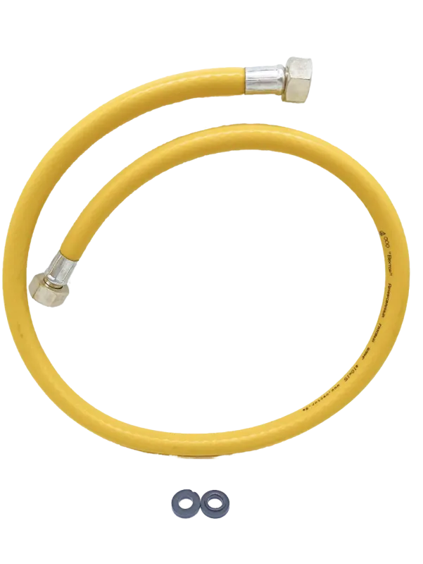 подводка для газа изготавливается из трех слоев, внешний слой желтого цвета из термостабильного поливинилхлорида, внутренний слой из поливинилхлорида устойчивого к газовой среде, с армированием полиэфирной нитью, и концевой арматурой из железоуглеродистой стали с резьбой 1/2 дюйма.