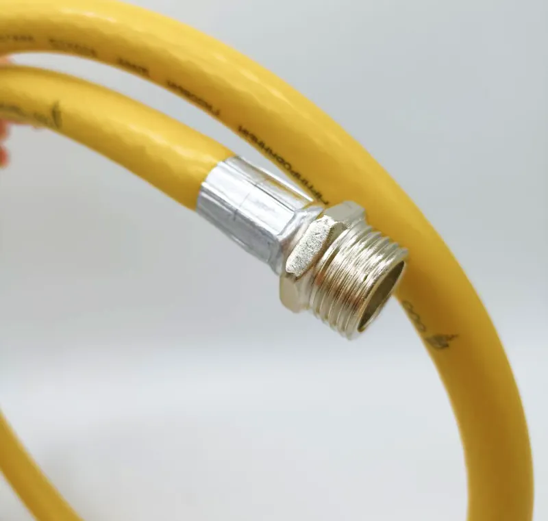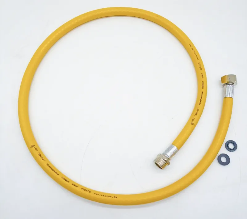 подводка для газа изготавливается из трех слоев, внешний слой желтого цвета из термостабильного поливинилхлорида, внутренний слой из поливинилхлорида устойчивого к газовой среде, с армированием полиэфирной нитью, и концевой арматурой из железоуглеродистой стали с резьбой 1/2 дюйма.