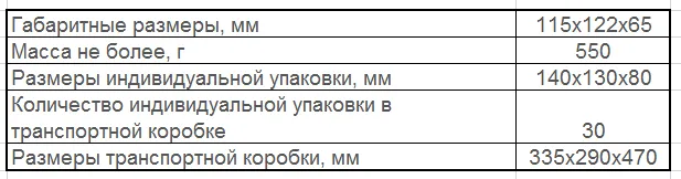 Упаковка и размеры