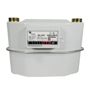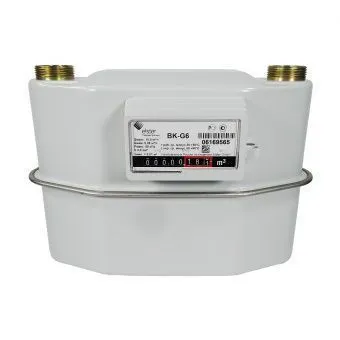 Принцип работы мембранного бытового счетчика газа BK (ВК): основан на отборе энергии поступающего газа. При перемещении мембран происходит поочерёдное выдавливание газа из рабочих камер. Кривошипно-шатунный механизм преобразует поступательное движение мембран во вращательное, которое через муфту передаётся счётному устройству.