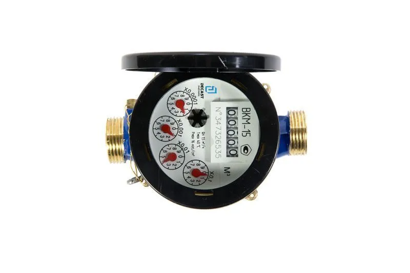 - мокроходный счетчик воды не имеет разделения на «сухую» и «мокрую» часть, прямая передача вращения крыльчатки в счетный механизм без использования магнитной муфты обеспечивает высокую чувствительность счетчика, особенно в области малых расходов;