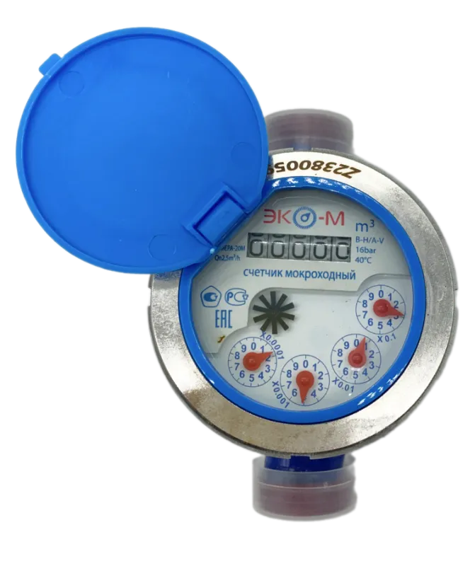 Счетчик воды ЭКО-М ЭКОМЕРА-20М Мокроходный, с глицерином, включает КМЧ устанавливается в помещениях с высоким уровнем влажности, а также может быть установлен в затапливаемом колодце.