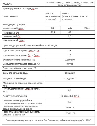 - Передаточный коэффициент (цена импульса) указывается при заказе потребителем. Он может быть равен от 0,01 до 10 м3/имп. и указывается в паспорте счетчика.