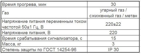 - выдачи сигнала о превышении предельно-допустимых концентраций оксида углерода и довзрывоопасных концентраций метана в воздухе,