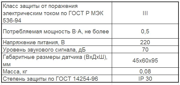 При срабатывании аварийной сигнализации на сигнализаторе (системе) устройство также подает аварийный световой (горит красный светодиод) или звуковой сигналы.Технические характеристики